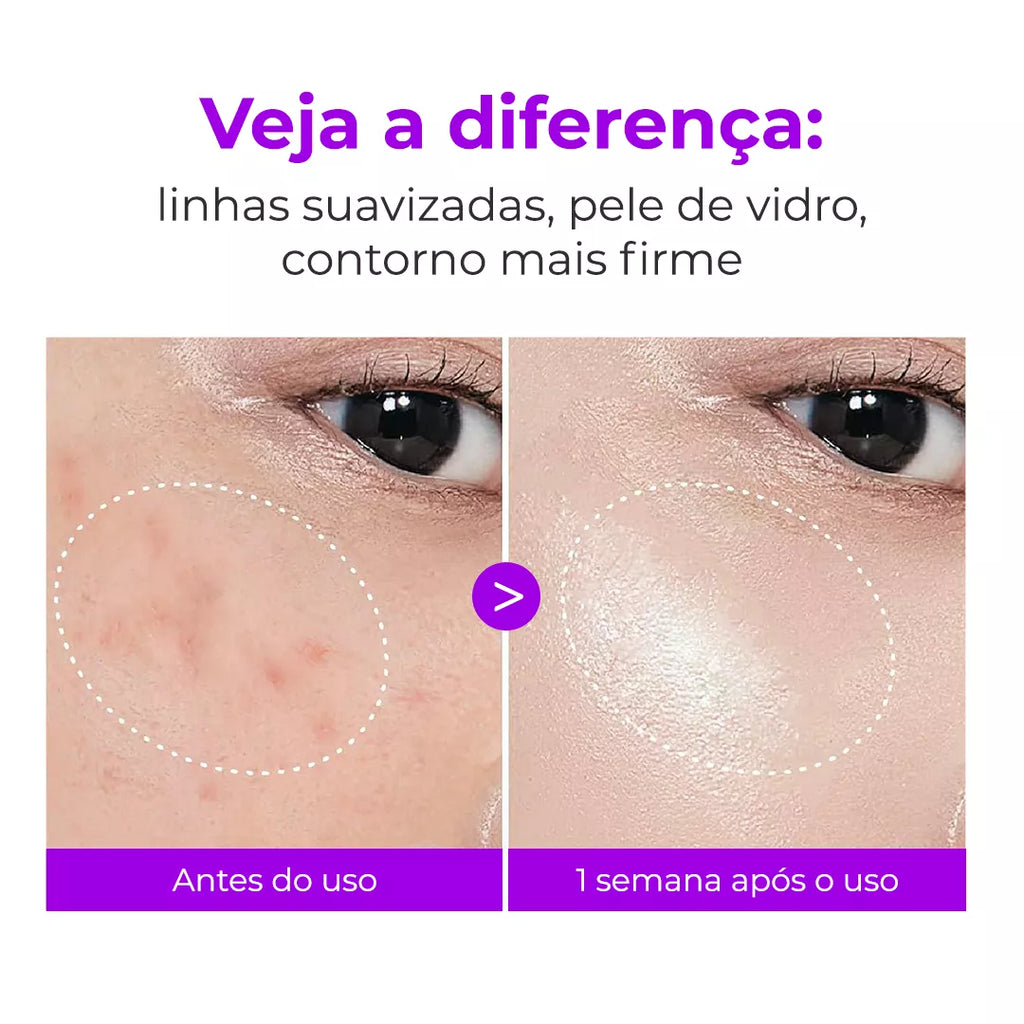 A alta concentração de TECA (forma pura e poderosa da Centella), ceramidas e peptídeos proporciona efeito tensor e melhora da elasticidade da pele. Você sente sua pele mais firme, lisa e com contornos mais definidos, sem procedimentos invasivos.