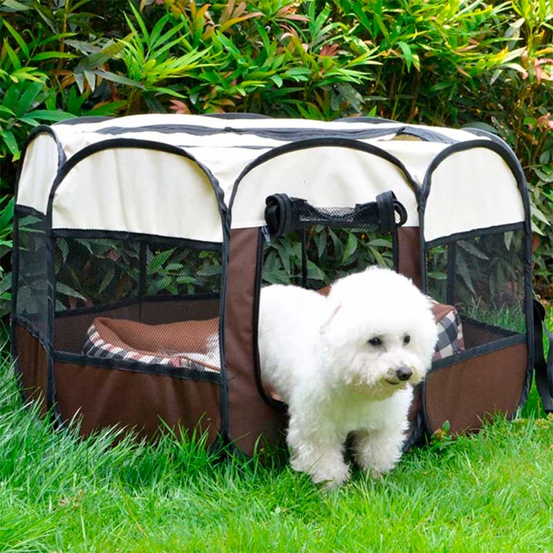 Uma tenda portátil de treino e exercícios para proporcionar um ambiente seguro e protegido para o seu cão.