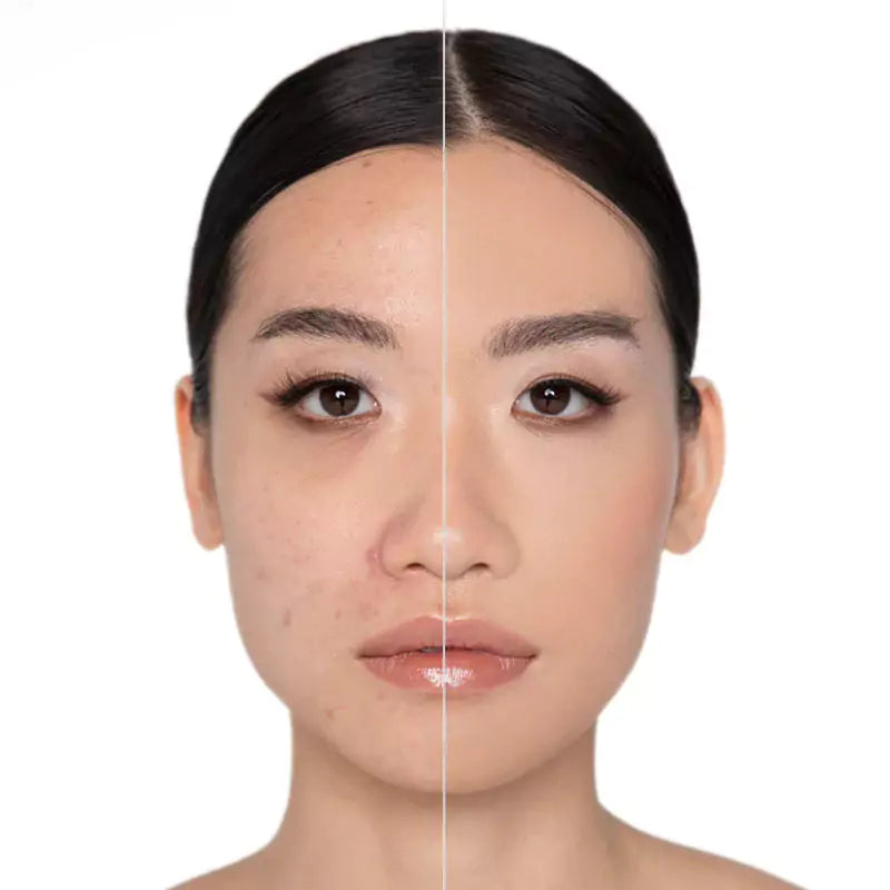 A base ColorSync ajusta-se ao seu tom de pele de forma inteligente, garantindo uma cobertura uniforme e natural, sem o esforço de escolher entre várias tonalidades.